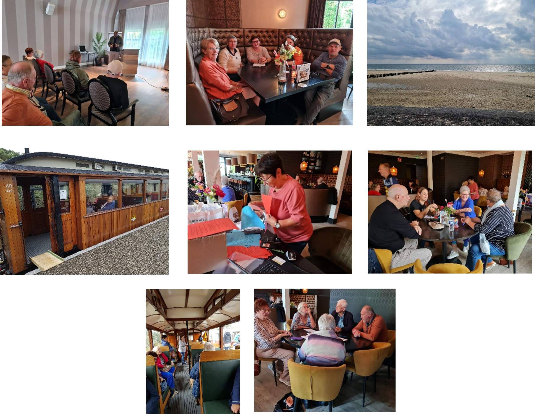 Een interessante uiteenzetting over zelfzorg en persoonlijk leiderschap, een bezoek aan het treinmuseum, een rit in een oude trein langs de Zeelands kust brachten ons in een opperbeste stemming. De keuken van het hotel verwende ons met een zeer lekkere menu’s.